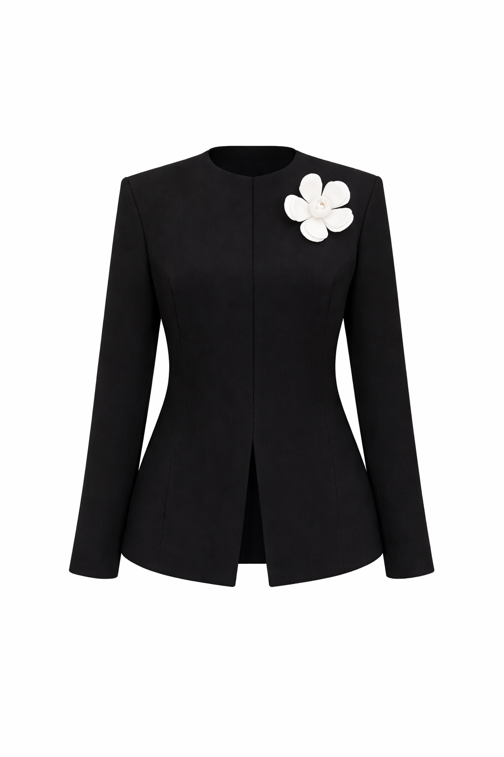 Zarif siyah üst tasarımı ve göğüs kısmındaki çiçek broş detayıyla öne çıkan bu şık kombin, krem A-kesim etekle tamamlanarak klasik ve modern çizgiyi bir araya getirir. Özel günler, davetler ve şık organizasyonlar için sofistike bir tercihtir.