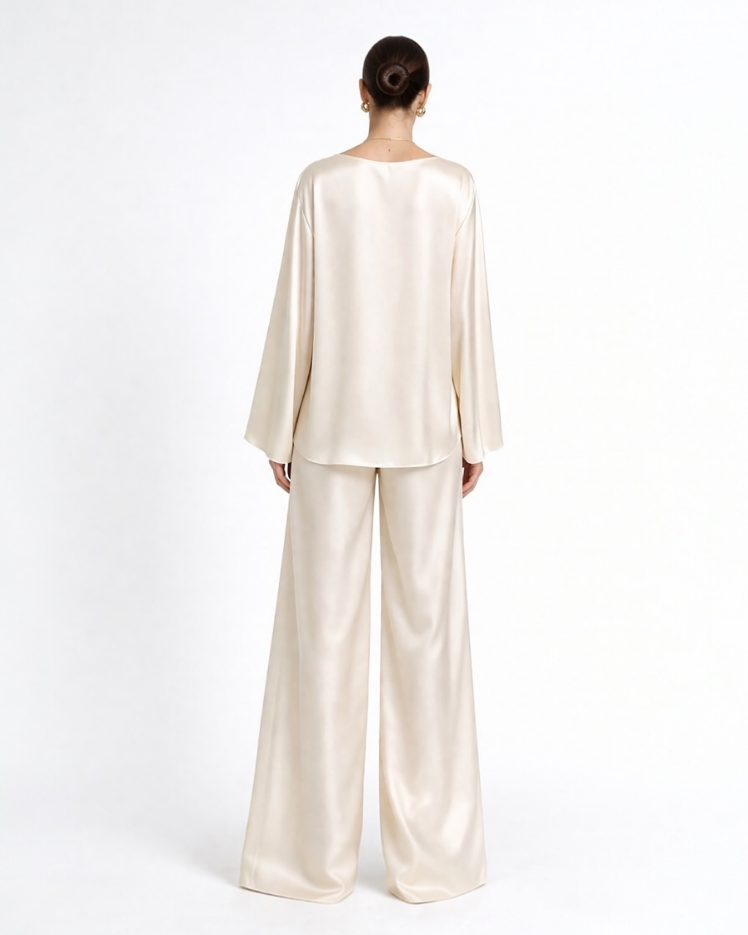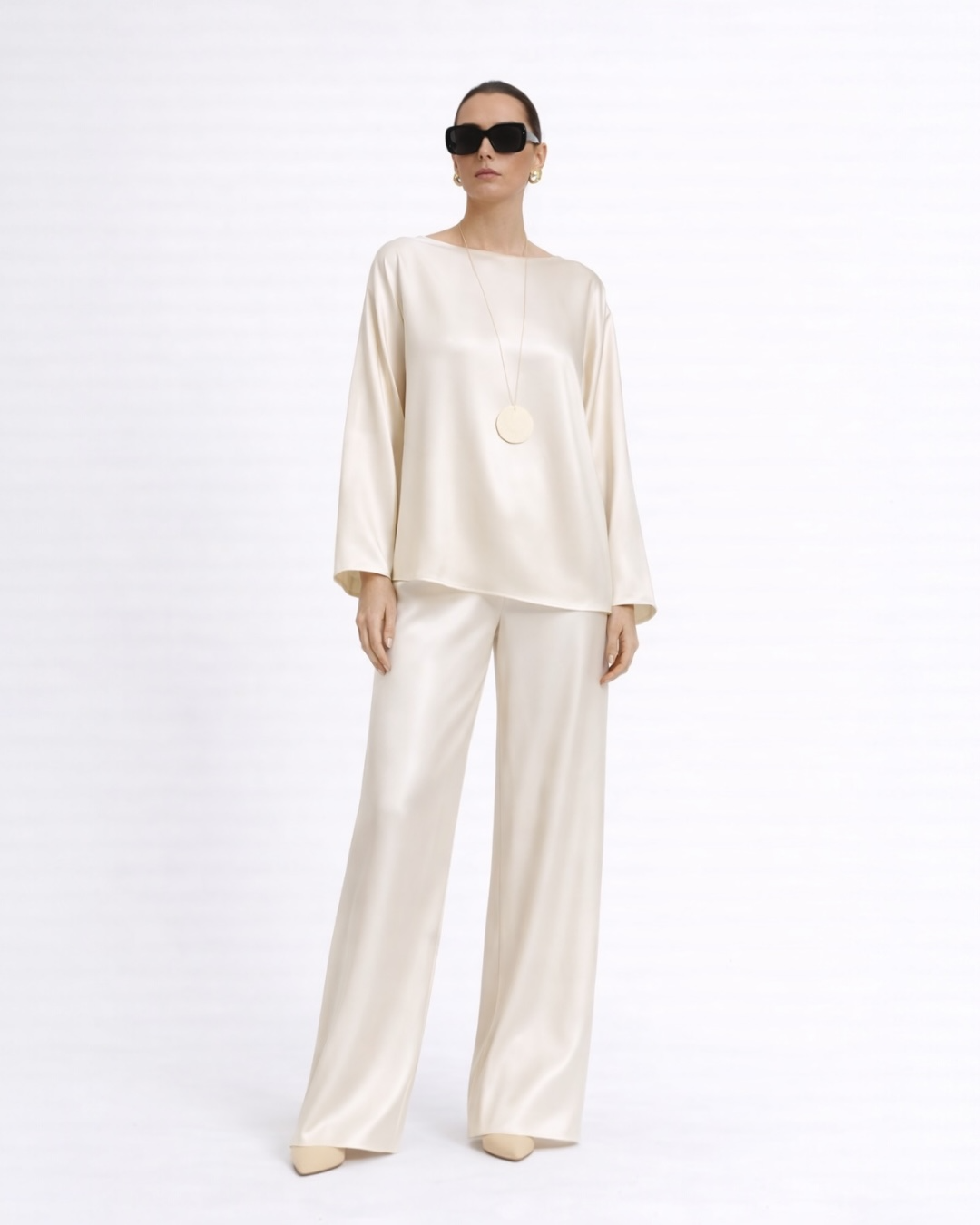 Ürün ipeksi satenden üretildi. Takım halinde günlük şıklığı temsil eden tasarım dolabınızın vazgeçilmez parçası olacak. Vucut hattı belli etmez. Bisiklet yaka geniş kalıptır. Pantolon belden lastiklidir.