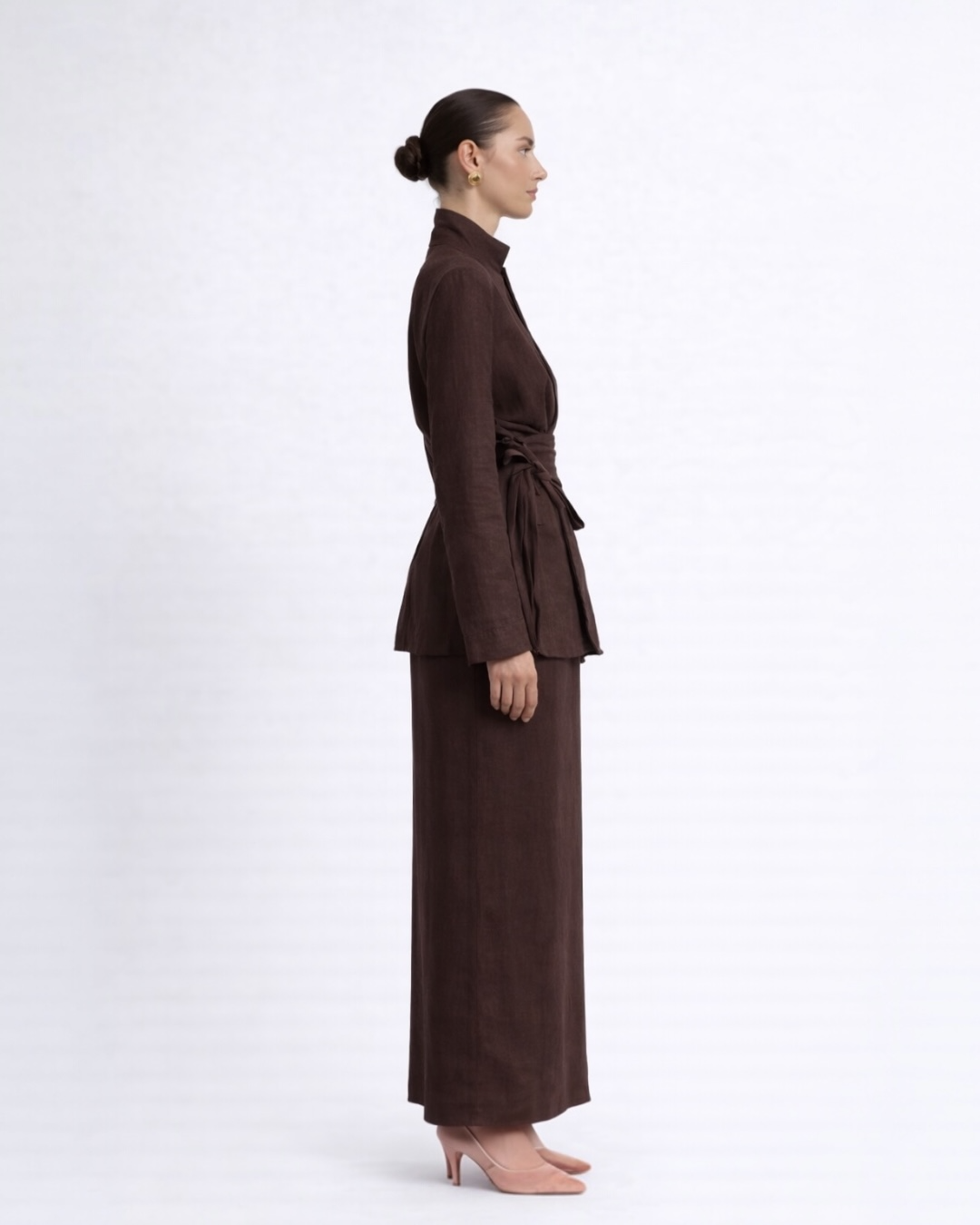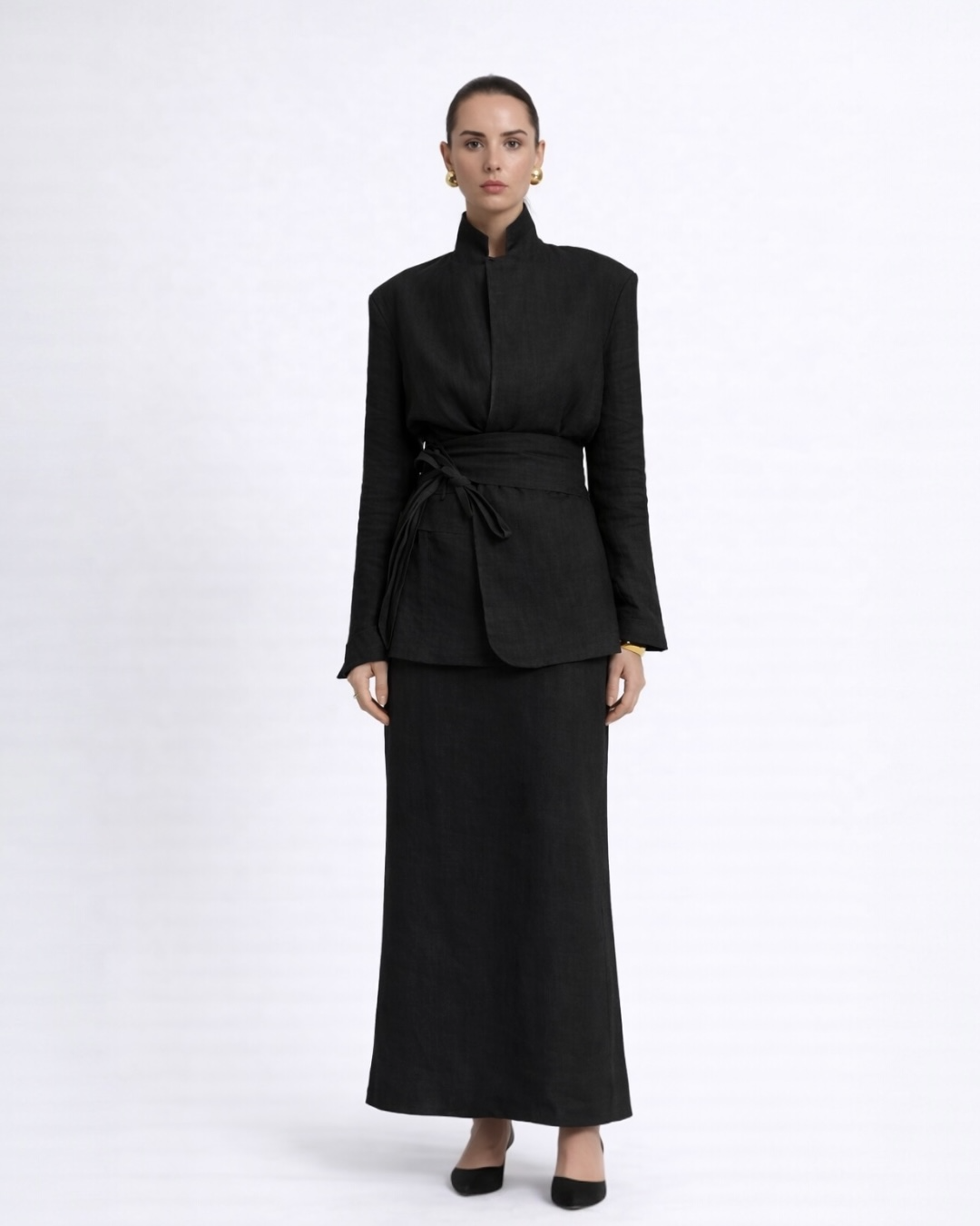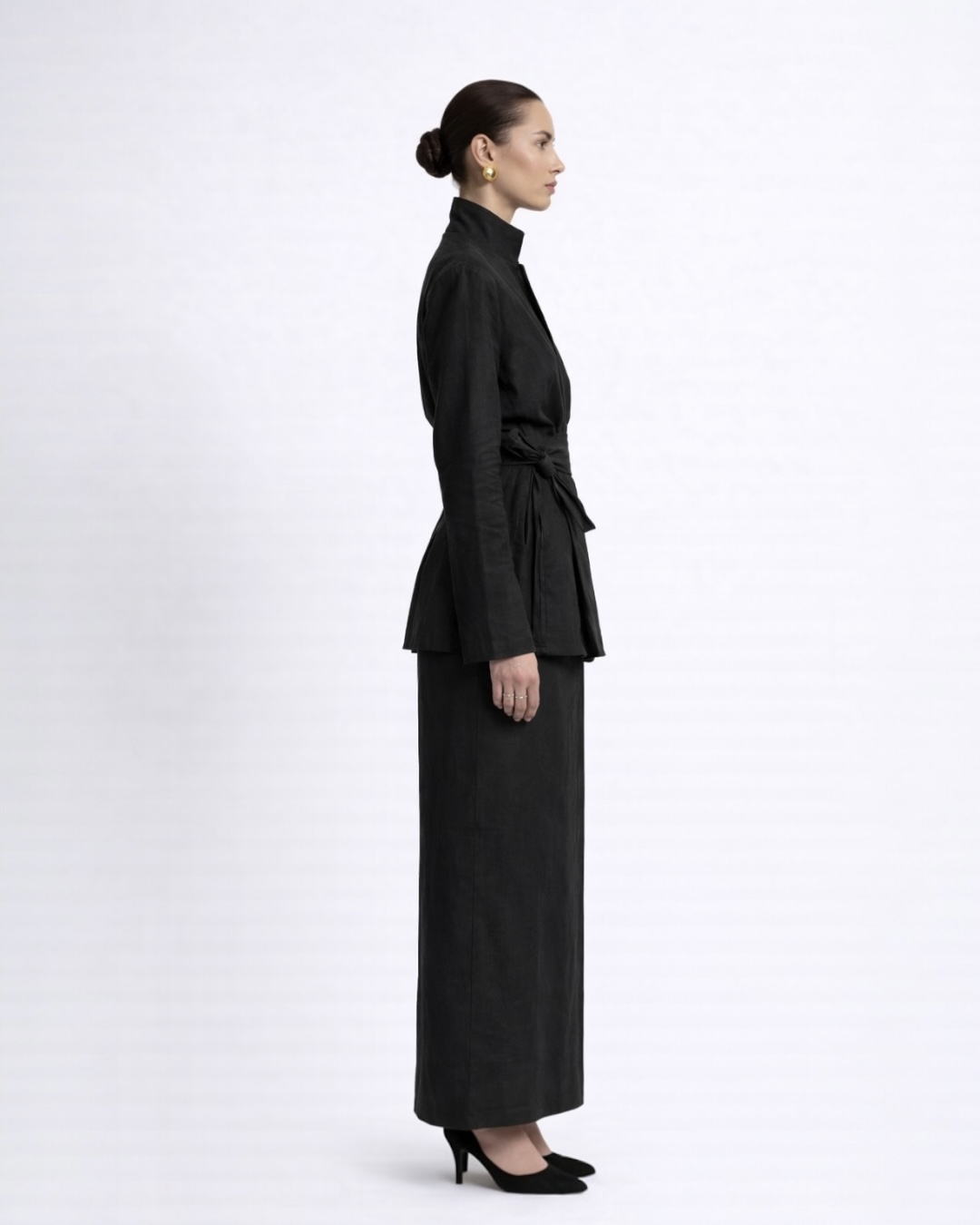 Ürünümüz ön sipariştir. Tunus’ta üretilmektedir. Takım astarsız yazlık üründür. Keten kumaş kullanılmıştır. Ceket vatkalı oversize kesim. Boy 70 cm. Etek boy 95 cmdir. Rahat kalıptır.
