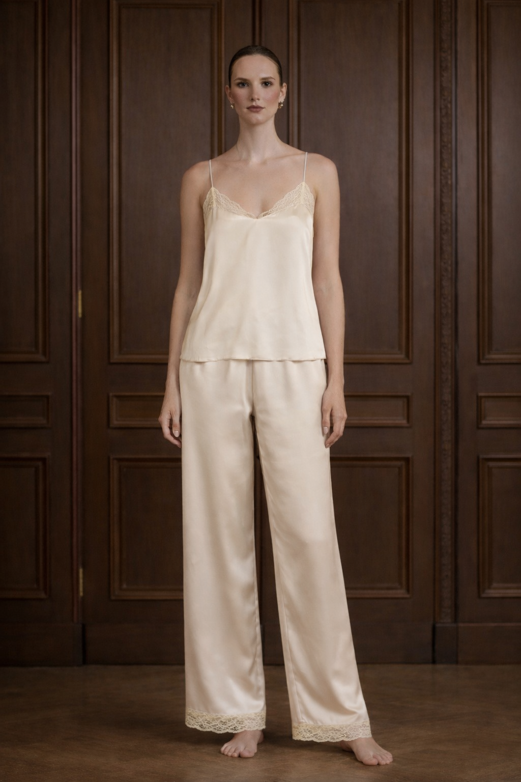 Featuring a timeless champagne hue and feminine lace accents, this satin pajama set delivers understated luxury. Designed to make every moment feel special, it combines elegance with effortless comfort.